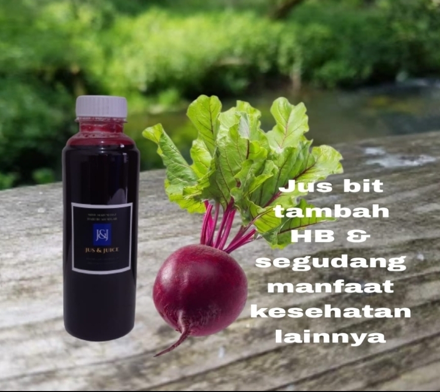 Jus bit minuman yang sehat karena dibuat tanpa pengawet dan tanpa bahan essens, terbuat dari buah segar. Banyak dipercayai dan dikonsumsi untuk penambah darah. Jus ini dibuat dengan resep tepat yang membuatnya menjadi lezat saat dikonsumsi. Produk sudah teruji disukai dan dipercaya banyak pelanggan, sudah ratusan produk terjual. Aman dan menyehatkan. Manfaat buah bit bisa didapatkan dari nutrisi yang terkandung di dalamnya seperti karbohidrat, protein, serat, serta vitamin dan mineral seperti vitamin C, folat, kalium, magnesium, sodium, dan zat besi. Bit rendah lemak dan kalori, dan tidak mengandung lemak jenuh atau kolesterol. Bit juga mengandung antioksidan yang dapat membantu mengurangi efek peradangan. Manfaat jus bit lainnya diantaranya adalah untuk menurunkan tekanan darah baik untuk kesehatan hati mencegah penuaan dini kaya akan serat sehingga baik untuk pencerna