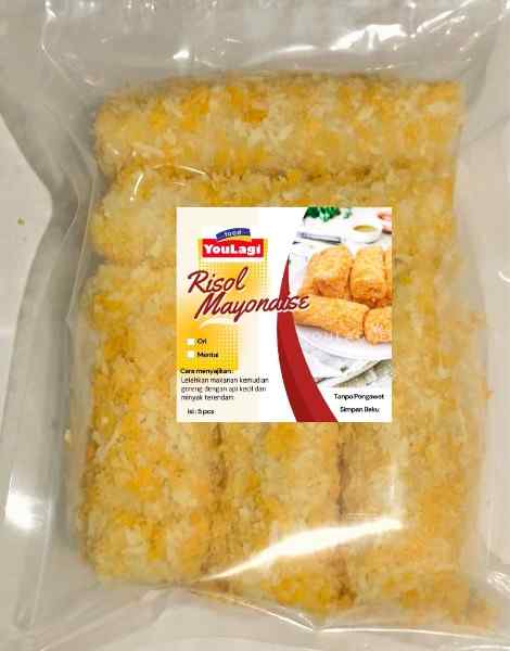 Risol mayonaise ini isinya terdiri dari beef + telur + mayonaise + saos sambal yang dibalut dengan tepung roti. risol mayonaise 1 bungkus ada 5 pcs. risol mayonaise Cemilan praktis tinggal di goreng saja. risol mayonaise merupakan camilan yang banyak disukai dan risol mayonaise diproses dengan higienis dengan tetap mengutamakan kualitas yg baik. cara memasak risol mayonaise adalah dengan cara di goreng dalam minyak terendam dan api kecil. risol mayonaise tahan di suhu ruang selama 24 jam dan risol mayonaise tahan 3 bulan di freezer